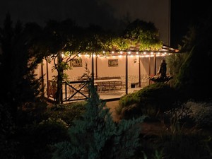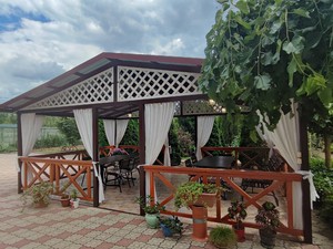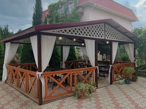 кафе, кухня для самостоятельного приготовления пищи (В оборудованной столовой гостевого дома, находятся две газовые 4-х конфорочные поверхности с вытяжками, холодильник, морозильная камера, 2 мойки с горячей и холодной водой, большой ассортимент кухонной и столовой посуды. Во внутреннем дворике оборудовано место для приготовления шашлыка (мангал, шампура, барбекю).)