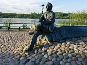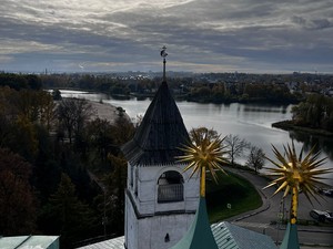 09:00. Обзорная экскурсия по Угличу. Мы проедем на автобусе по уютному небольшому городу, познакомимся с его строгой классической планировкой (как и стоило ожидать, от кварталов XVIII века – радиально-полукольцевая), увидим старинные Торговые ряды, торжественный памятник Русскому воинству, купеческие особняки XVIII-XX вв., церковь Дмитрия-на поле, проедем по плотине Угличской ГЭС, увидим шлюз и живописную дамбу. И главное – панорама Углича с левого берега Волги.