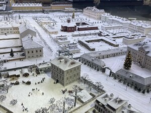 Интерактивный макет Петербурга XVIII века, представляющий собой реконструкцию наиболее значимых достопримечательностей города и пригородов в масштабе 1:87. С помощью кнопок можно управлять сценками из жизни Петербурга XVIII века с участием исторических персонажей: движутся люди и кареты, бьют фонтаны, день сменяется ночью, плывут корабли, меняются погодные условия
